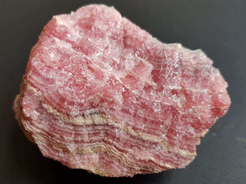 La rodocrosita es un mineral de color rosa intenso, compuesto por carbonato de manganeso (MnCO₃). Su nombre proviene del griego rhodon (rosa) y chros (color), debido a su tonalidad característica. En Argentina, se la conoce también como “rosa del inca” y es considerada la piedra nacional.